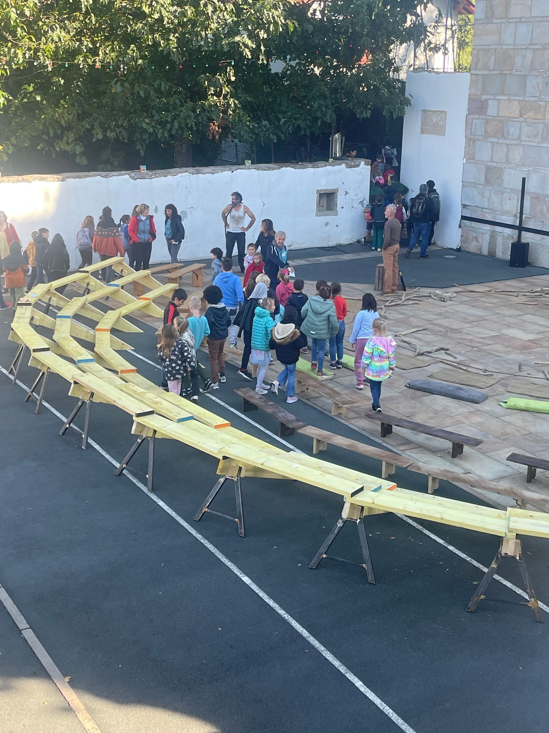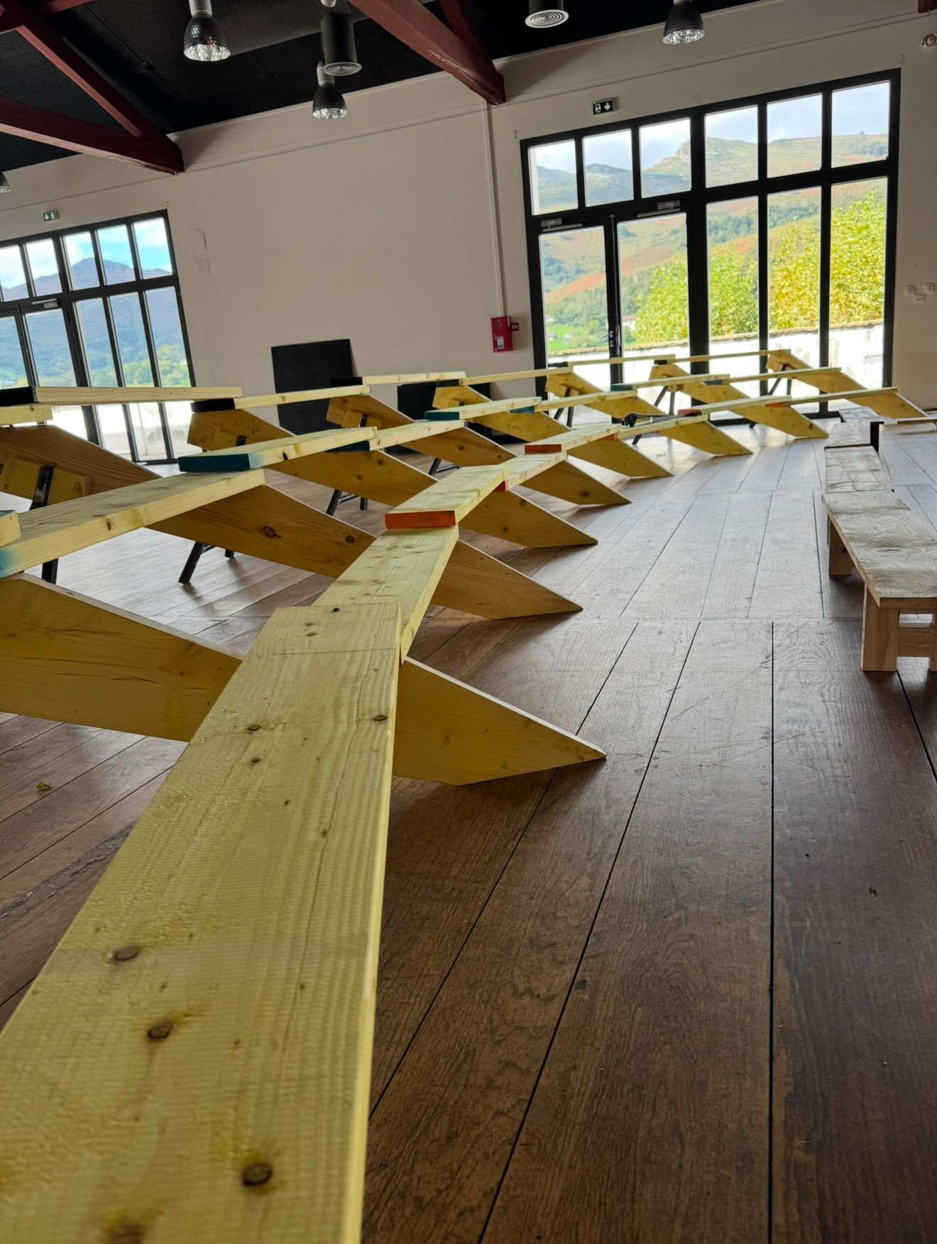 Les petits gradins prennent moins d'une heure de montage avec un peu d'organisation (pour le gradinage complet de + de 100 personnes).