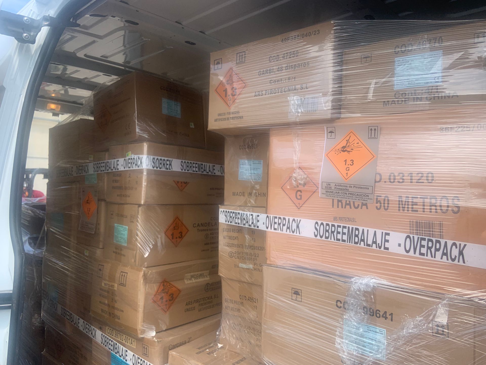 Le transport de matières explosives est rigoureusement encadré par l'ADR pour le transport routier, convention internationale dont la France est signataire. Les artifices de loisirs font partie de la CLASSE 1 : Matière explosives.